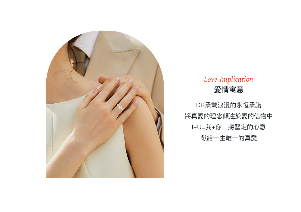 自品牌創立之初便立下世間獨特規定,每位男士憑身份證一生僅能定制一枚DR求婚鑽戒,贈予此生摯愛一人,寓意“一生 · 唯一 · 真愛”
