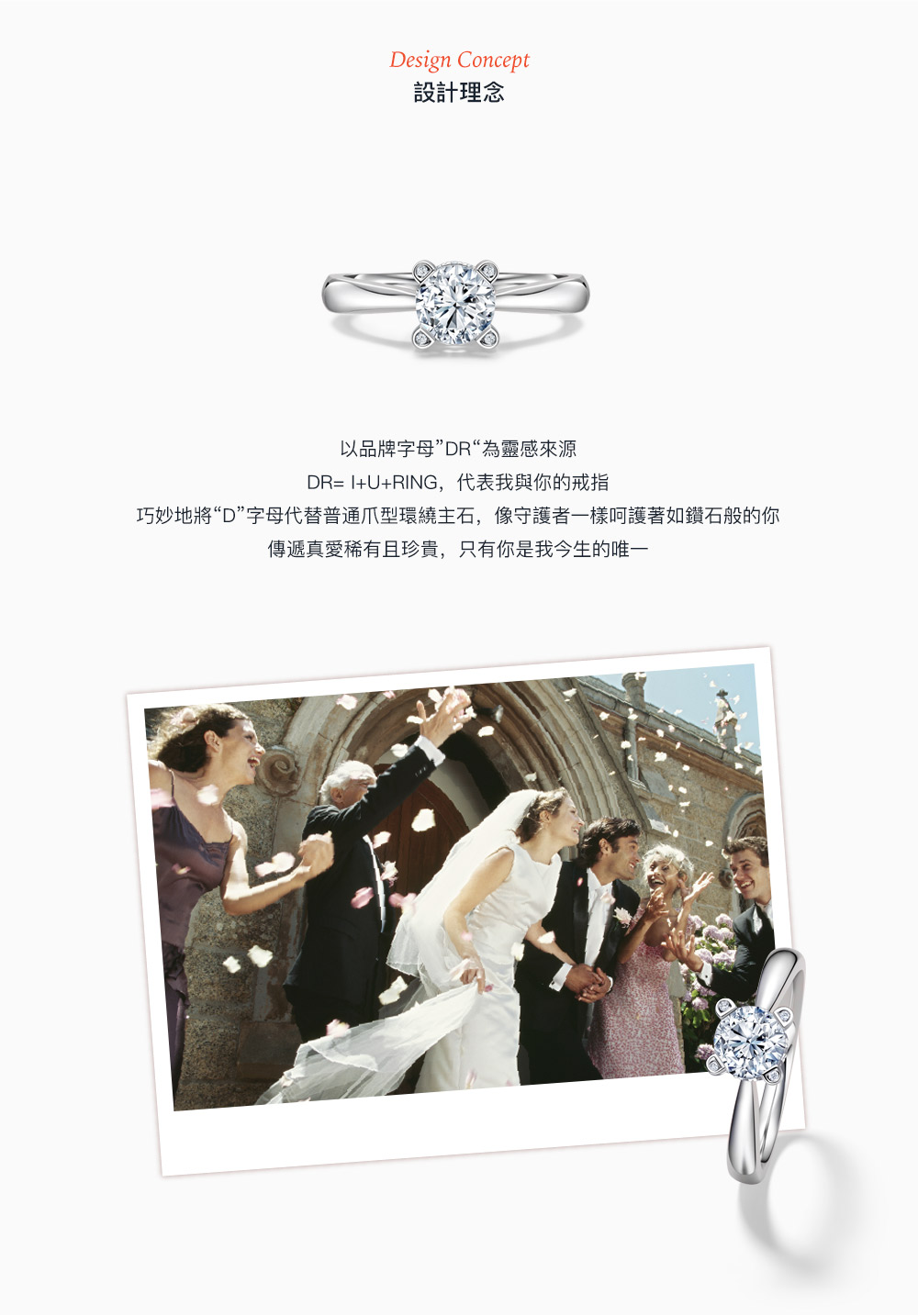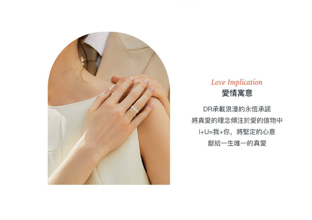 自品牌創立之初便立下世間獨特規定,每位男士憑身份證一生僅能定制一枚DR求婚鑽戒,贈予此生摯愛一人,寓意“一生 · 唯一 · 真愛”