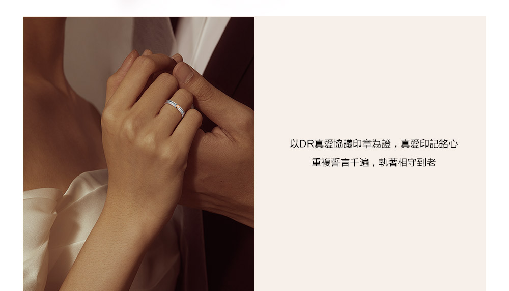自品牌創立之初便立下世間獨特規定,每位男士憑身份證一生僅能定制一枚DR求婚鑽戒,贈予此生摯愛一人,寓意“一生 · 唯一 · 真愛”