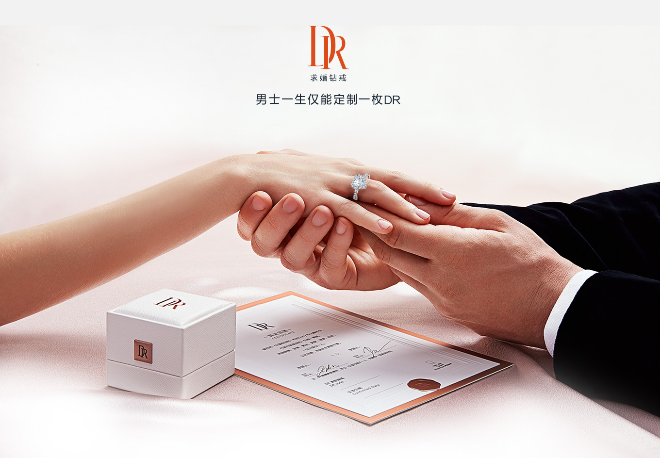 自品牌創立之初便立下世間獨特規定,每位男士憑身份證一生僅能定制一枚DR求婚鑽戒,贈予此生摯愛一人,寓意“一生 · 唯一 · 真愛”